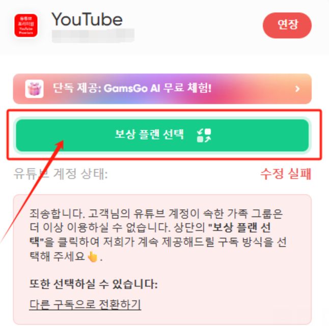 알고 보니 2년 넘게 잘 쓰고 있던 겜스고 유튜브 프리미엄 서비스가 (가족공유) 어느 순간 해제돼있었던 겁니다.