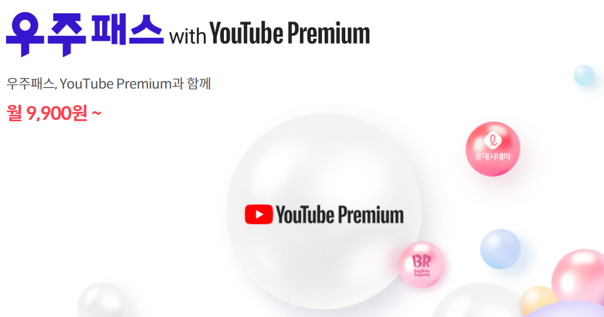 ➡️ 2024년 6월 1일(토)부터 <우주패스 with YouTube Premium> 이용요금이 월 9,900원(Wavve 선택 시 월 14,900원)에서 13,900원(Wavve 선택 시 월 18,900원)으로 인상됩니다. (*부가세 포함)